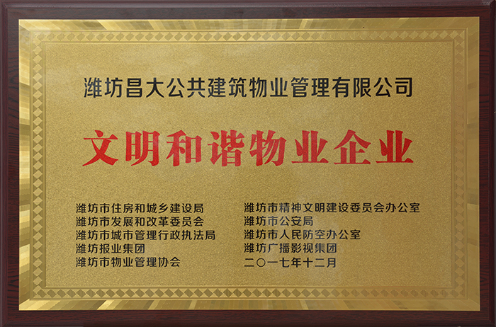 2017年12月被評為文明和諧物業(yè)企業(yè)