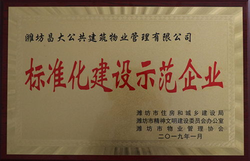公司被市住建局授予“十佳物業(yè)企業(yè)”稱號;被市住建局、市文明辦、市物業(yè)管理協(xié)會聯(lián)合評為“標準化建設示范企業(yè)”。其中,濰坊市峽山區(qū)創(chuàng)新創(chuàng)業(yè)服務中心園區(qū)和青州市范公亭區(qū)域物業(yè)管理項目被評為“標準化建設示范項目”。
